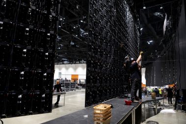 In perhaps Facebook’s most robust LED showing to date, the event had several massive, but separate LED installations, the largest of which hovered behind the sprawling keynote stage. With 1044 ROE Diamond 2.6 small pixel pitch tiles, more than 38 million pixels, and over 14,000 lbs. of equipment, the 150-foot-wide curved stretch of screens was more than impressive. In fact, it’s arguable that this build was only matched by the weighty content. During the two days of sessions, Facebook announced updates to Instagram, Facebook Messenger, the core Facebook app, WhatsApp, and the future of AI. We also received more news about the Oculus Quest and Rift S virtual reality headsets, with live demos to illustrate the technology.
