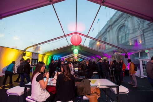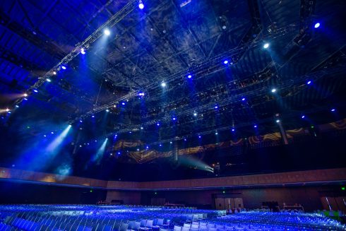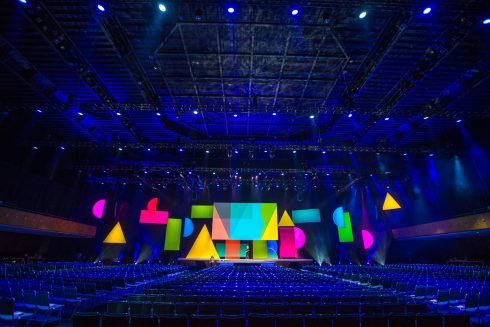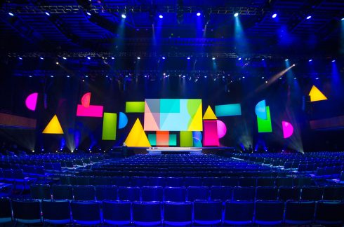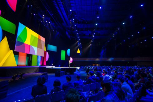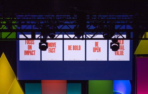 This spring, FNTECH was delighted to partner with Facebook to create the first-ever Ads and Business Platform Summit. Held at the illustrious Bill Graham Civic Auditorium in the heart of San Francisco, this one-day event boasted 2000 employees all focused on bringing their dynamic teams together. To accomplish this feat, we worked closely with Facebook to design a beautiful and cohesive set that encouraged collaboration and big picture thinking. Introducing a round main stage that nudged out into the audience helped transform the vast auditorium into an intimate, personal affair. Every person in the house had a prime seat. The same held true for the dining; with a lavish 350’ tent that felt part urban street fair, part rockin’ cocktail party, attendees were able to reconnect with long-time colleagues and make all-import new connections in a relaxed, yet energized atmosphere.