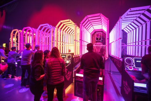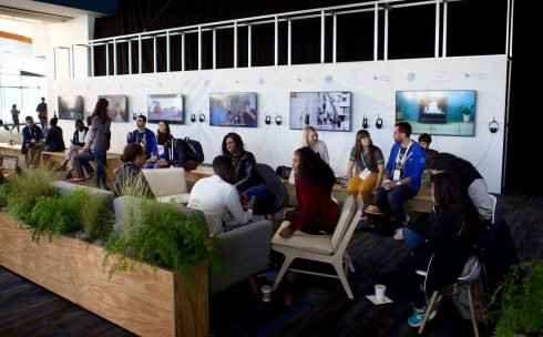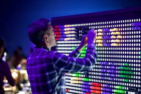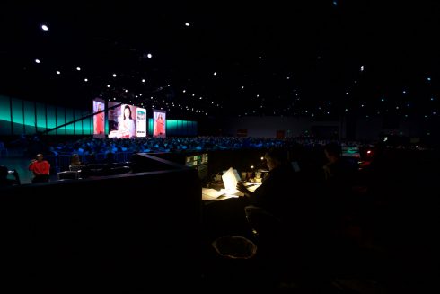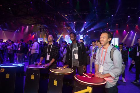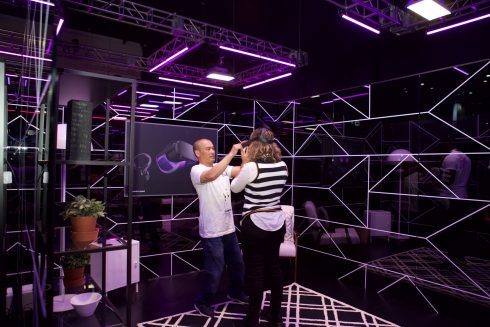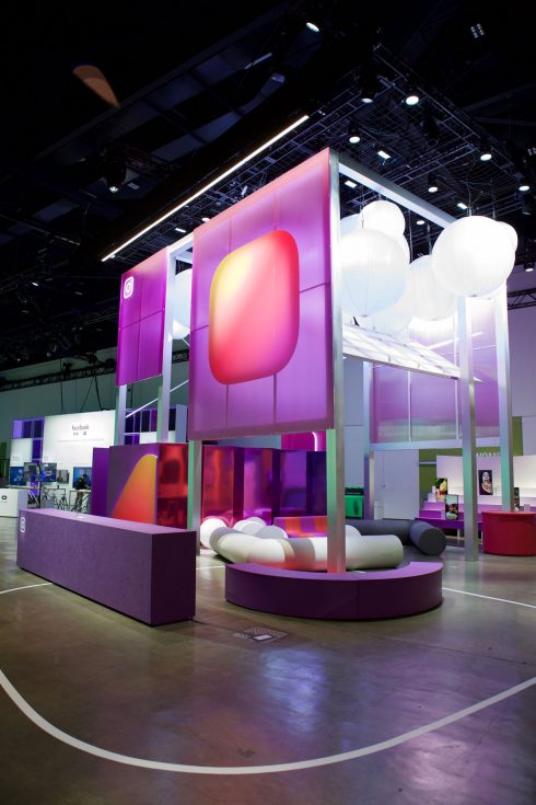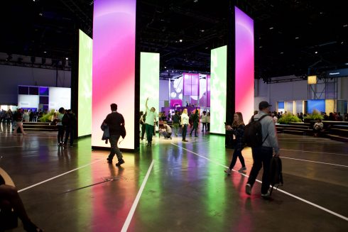 In the expansive 90,000+ sq. ft. Festival Hall, intricate demonstrations of all types of proprietary Facebook tech were on full display. From games to networking apps to instructional classroom sessions, the two-hall space was full of digital eye candy. The crown jewel of the room was the “future chandelier” – an extraordinary interactive exhibit composed of five double-sided LED panels, each 6’-6” wide by 18’ tall, with exclusive camera tracking, organic pixel chorography that moved with attendees’ physical gestures, and custom 10.1 audio surround sound. It was truly an immersive experience.