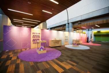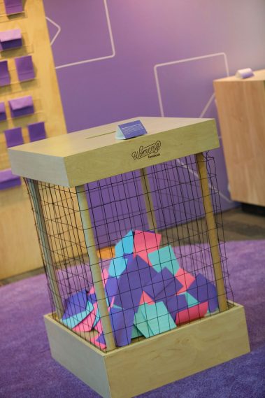 To encourage networking and facilitate new connections, FNTECH provided many small vignettes that functioned as built-in conversation starters – a whimsical floating swing, oversized building blocks and adult set of “monkey bars” to name a few. Pop-up booths in a large breakout session encouraged women to talk about key issues like healthcare, finances and quality sleep.