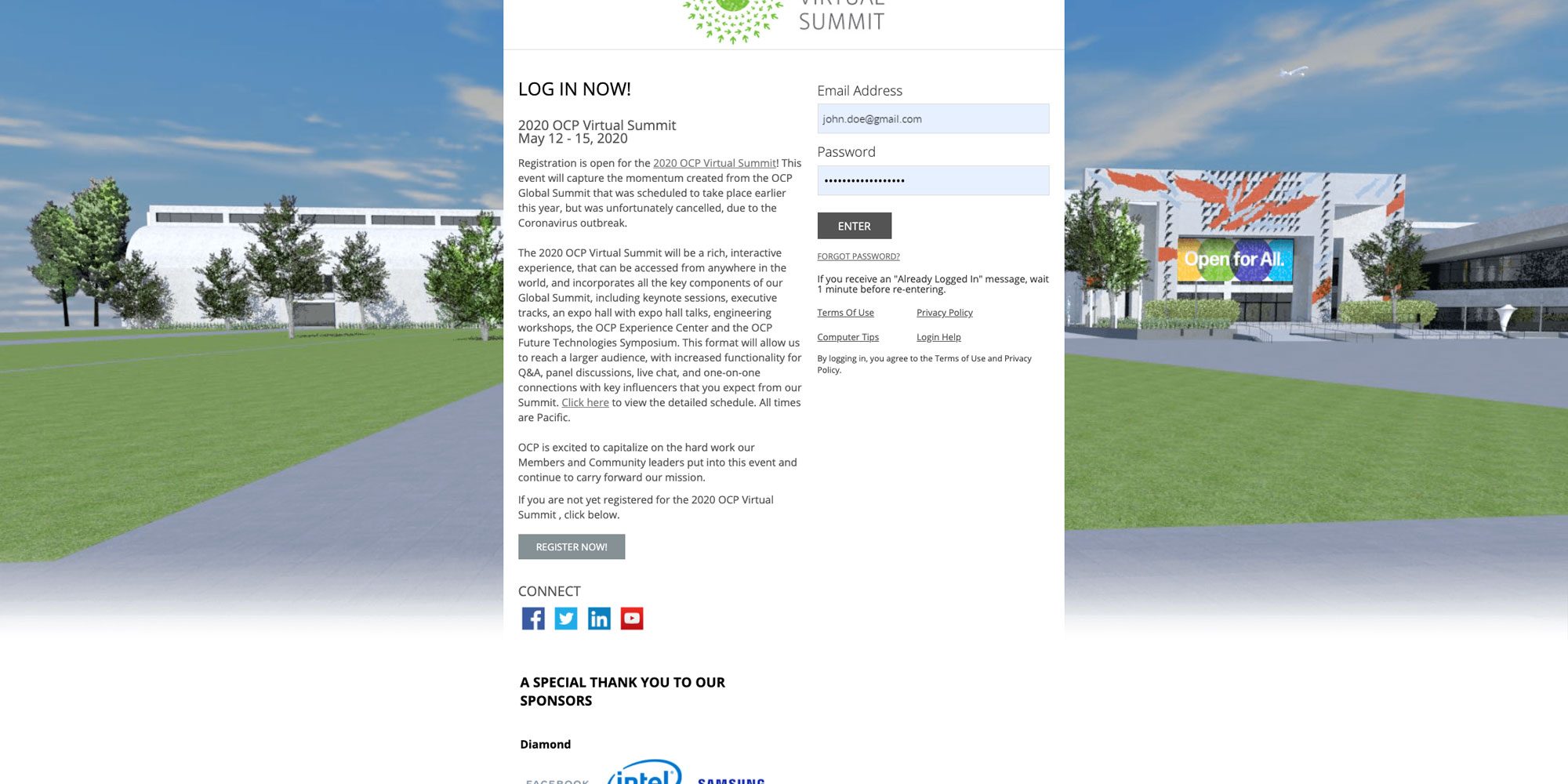 Due to COVID-19 travel restrictions, the Open Compute Foundation had no choice but to cancel their large in-person Global Summit just days before the event was due to commence. Over the next week, we met with their leadership team and discussed multiple options for moving forward. Ultimately, we landed on transforming their ENTIRE show into a virtual event, including keynotes, breakout sessions, Expo Hall, Future Tech Symposium, networking lounge, media hub, Experience Center, foundation Basecamp, and more … in less than 60 days. (Cue anxious music!)