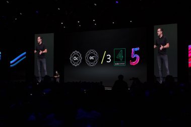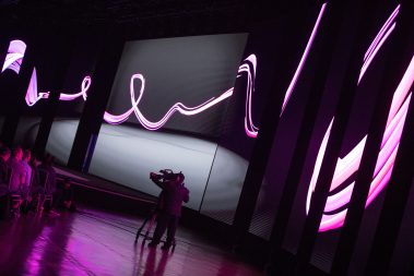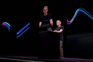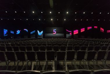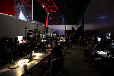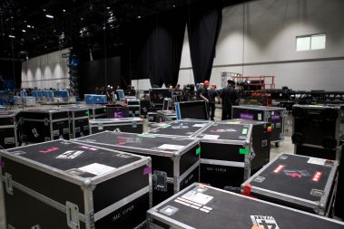Speaking of the keynote, the video team wrangled 11 simultaneous cameras, 19 enormous ROE 3.1mm pixel pitch LED screens with image processing driven by the latest Brompton Tessera SX40, 4K processors and all screens were rigged to fly. The combined number of onscreen pixels totaled a whopping 26,763,264 and the fiber optic cable stretched 4,132 linear feet, or to put it into perspective, about the length of 11 ½ football fields.