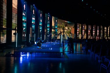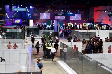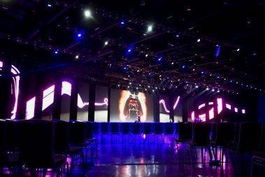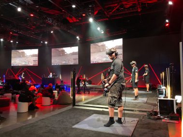 In the evenings, several parties provided attendee entertainment, and once again, Oculus hosted a grand multi-player gaming night, this year the VR League Onward Grand Finals. Changing the hall from keynote set-up to a 10-player VR game and back to keynotes for Day 2 was no small feat. For the competition, new staging, video programming, synchronized lighting, broadcast announcers, specialty catering, robotic cameras, etc. all combined to help the audience feel immersed IN the tournament, rather than mere observers.