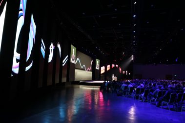 To ensure the messaging came across loud and clear in every space, the audio team installed 164 speakers, 100 comm drops, and 100 channels of RF microphones/wireless devices throughout the SJCC. (The keynote hall alone pushed more than 192,000 watts of power!)