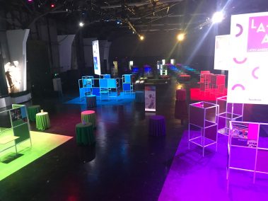 On one side, an interactive memory station was both a focal point and fabulous backdrop for Instagram photos. The custom-built rainbow “chandelier” carried theme of the event into the space, by way of jelly-acrylic pendants suspended from the ceiling. On-demand printed photos were also available for sharing.