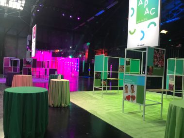 On the day of the event, guests were ushered into a colorful and large main hall. In the center, four separate “regions” – Latin America, North America, Africa and Asia Pacific – showcased personal photos, captions and stories from hundreds of Facebook employee events, submitted from dozens of Facebook offices. Oculus virtual reality stations allowed users to unwind and have some fun, and a private interview room facilitated testimonial filming in a comfortable setting.