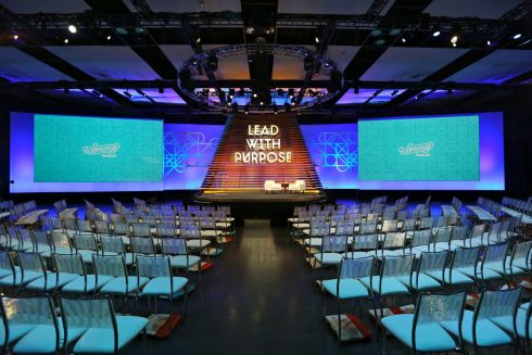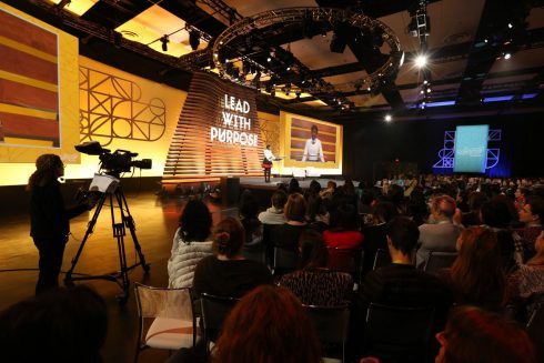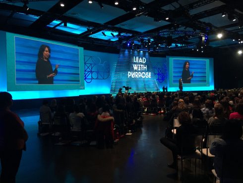 It was our great pleasure to work with Facebook again on their recurring Woman’s Leadership Day conference this past January.  Over 2500 woman joined together at the Santa Clara Convention Center in Northern California to hear from some of the most influential women in the world today.  We worked with Facebook to create beautiful, engaging spaces, including general session, an evening reception and dining for all the attendees.  Registration with RFID badges, charging lounges, mother’s and interfaith rooms along with custom banners and graphics tied the areas together with a cohesive theme throughout.  A custom stage and environment really set the tone as well as world class lighting, audio and video.  A truly wonderful event whose impact will be felt for a long time to come.  Lead with Purpose!  (photos curtesy of Jeremy Waldorph and Facebook)